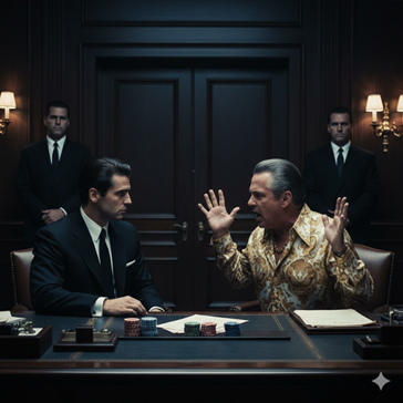 Por su parte, Moe Greene rechaza la oferta inicial, no obstante, no existe una negociación real, sino un escenario en el que una de las partes, consciente de que la balanza del poder se inclina claramente a su favor, impone su demanda sin necesidad de ofrecer algo a cambio —aunque, en apariencia, se plantea la pregunta sobre el valor de su participación en el casino—. Michael no modifica su postura, por el contrario, mantiene una lógica de “tómalo o déjalo”, en la que el resultado se encuentra prácticamente definido desde el inicio. El desenlace pone en evidencia la diferencia de poder entre uno y otro, pues la negativa de Moe Greene no conduce a un nuevo acuerdo, sino a su eliminación como actor dentro del juego, obteniendo un modelo de negociación en el que una parte impone totalmente sus condiciones y la otra no tiene capacidad de negociación.