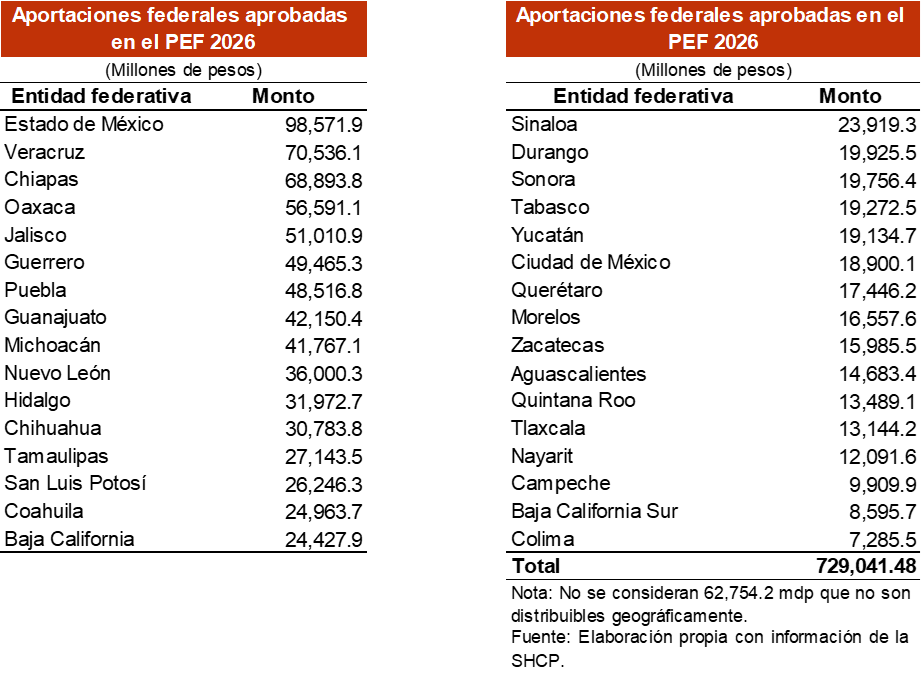 La aprobación del PEF 2026 no solo implica la determinación y distribución de los recursos del gobierno federal, sino que, debido a las características del federalismo fiscal mexicano —fuertemente centralizado—, dicha aprobación condiciona los recursos de los gobiernos subnacionales (entidades federativas y municipios), ya que estos dependen en gran medida de las transferencias que reciben de la federación, principalmente a través de los Ramos 28 y 33 (participaciones y aportaciones federales).